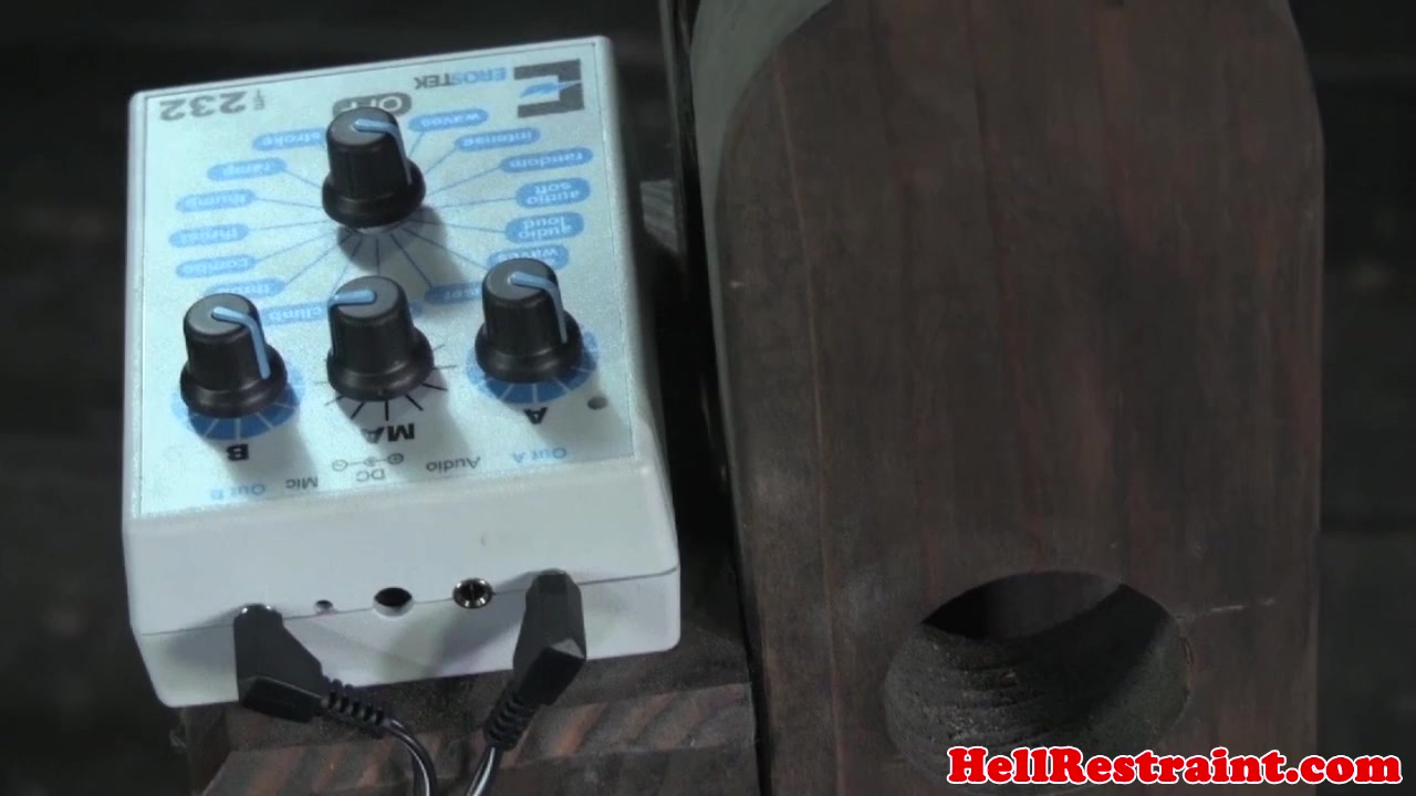 Привязанную к трубе брюнетку секут плёткой и трахают вибратором