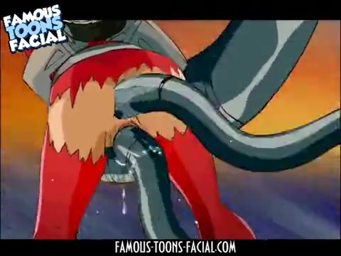 Робот хватает аниме девушек и вставляет щупальцы в киску и анус