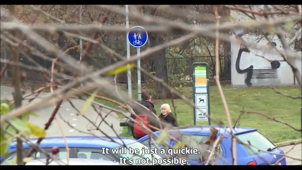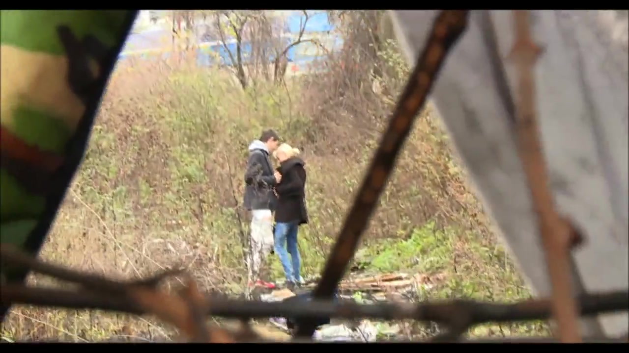Блондинка снимает на улице парня и занимается сексом в кустиках