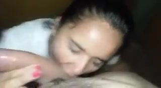 Латиноамериканская брюнетка сосёт мужчине яйца и делает минет