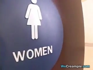 Развратная девка ебётся с парнем на полу в общественном туалете