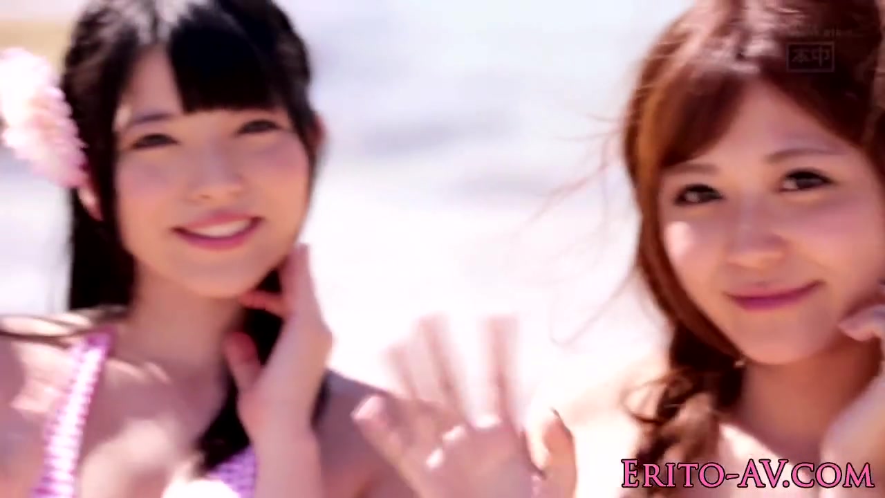 Горячие японские девки снимают бикини и ебутся с парнем на пляже
