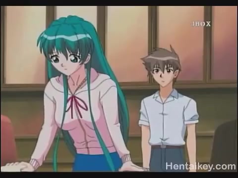 Красивая аниме подруга с зелёными волосами сосёт член в позе 69