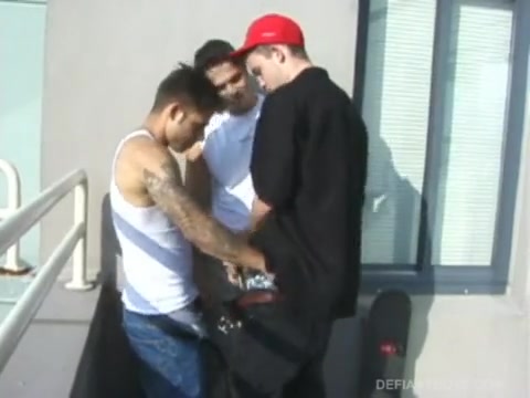 Трое молодых голубых приятелей занимаются любовью в квартире