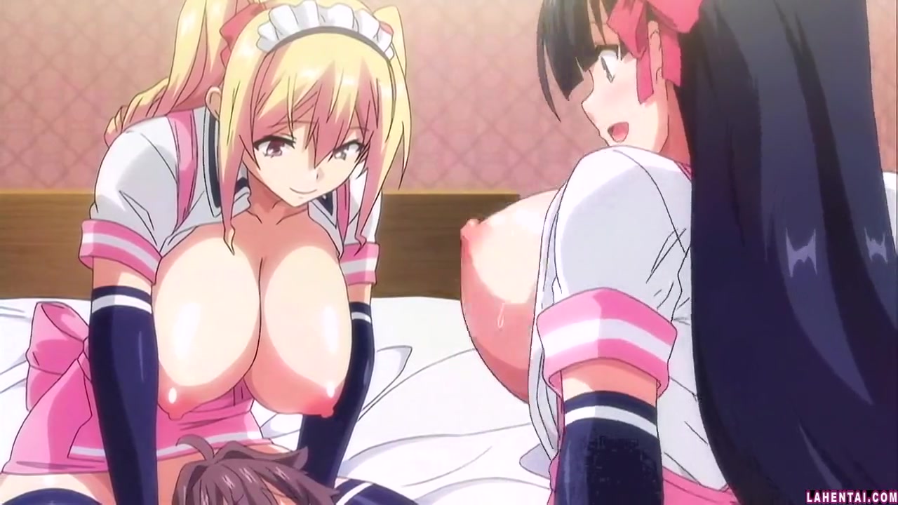 Две сиськастые хентай красавицы затрахали паренька на кровати