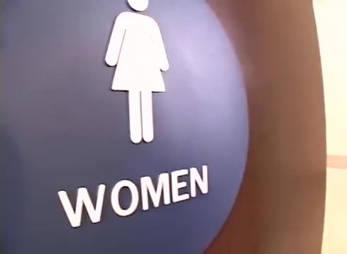 Шатенка с пирсингом носа ебётся с парнем в общественном туалете