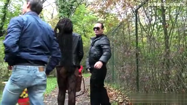Французская мулаточка трахается с парнями в переходе и в парке