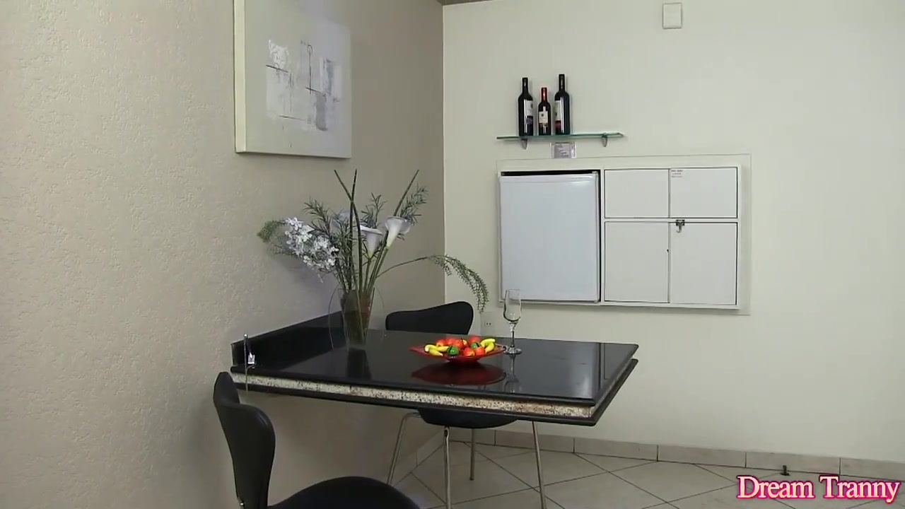 Мужчина целует грудь и сосёт член красивому татуированному транссексуалу с длинными тёмными волосами. Транс в сетчатых чулках на корточках делает мужчине минет. После минета мужчина делает трансу анилингус и вставляет свой член в анус. Он трахает этого гламурного транса в анал в разных позах.