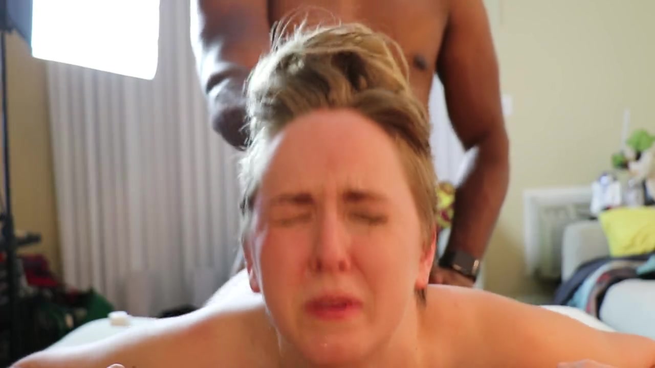 Негр схватил за волосы белую шалаву и оттрахал раком на кровати