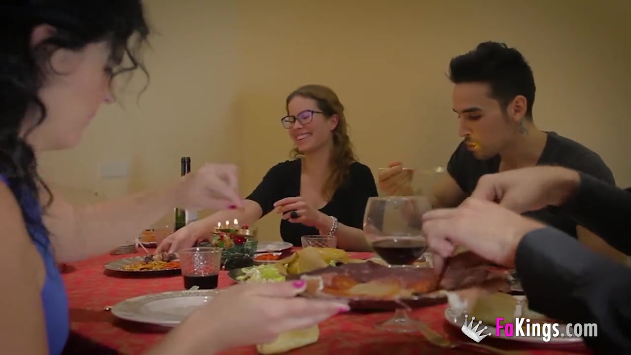 Две пары молодых испанских свингеров решили заняться групповым сексом после вечеринки по случаю Рождества. После праздничного застолья девушки сделали парням минет и занялись сексом прямо на столе. Оттрахав подруг в разных позах, парни кончили им на лицо.