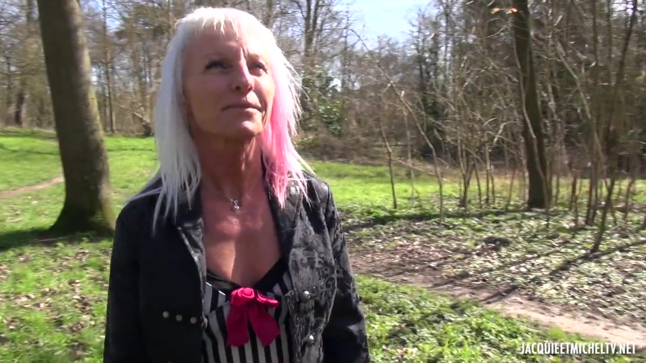 Мужчина на машине привёз домой пожилую французскую блондинку в чёрных чулках. Женщина в чёрных сапогах сделала ему минет и была оттрахана на кровати во влагалище и анус. После анального секса мужик кончил на её задницу.