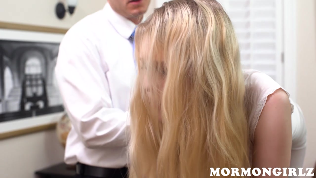 Похотливый наставник сектант поставил раком испуганную молодую блондинку Lily и начал лапать руками её сексуальное тело. Он заставил девчонку мастурбировать свою волосатую пизду и засадил в неё свой возбуждённый пенис. Сектант отъебал юную блондиночку на столе и полил спермой её красивую попку.