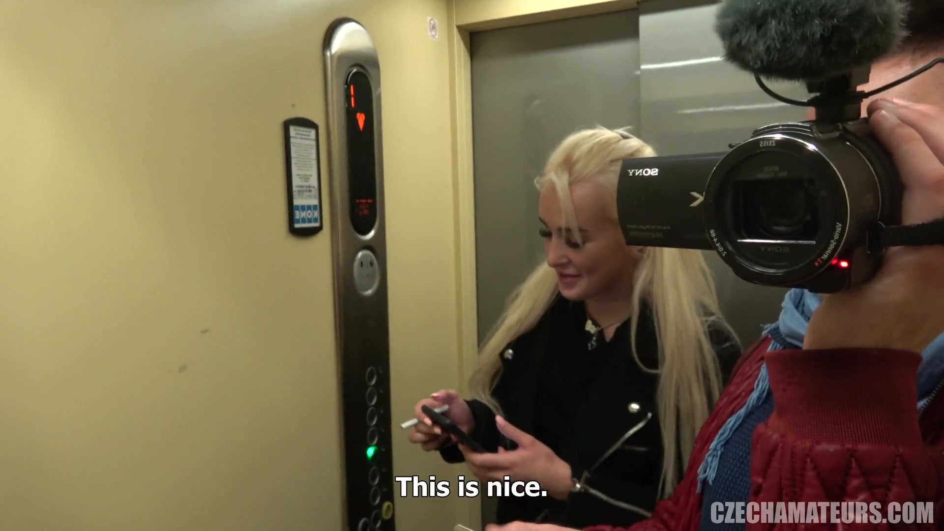 Изголодавшаяся по сексу чешская блондинка сняла с парня джинсы и отсосала член. После минета молодая блондинка в чёрных чулках выкурила сигарету и встала раком. Парню пришлось как следует отъебать возбуждённую сучку в выбритую пизду.