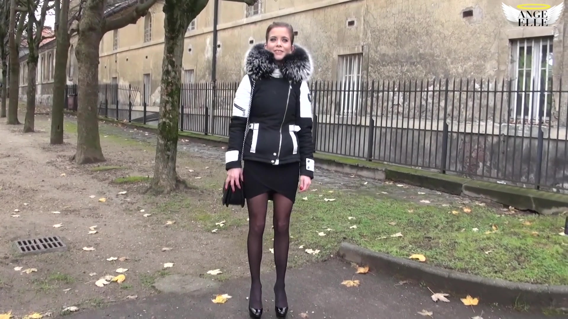 Красивую французскую девушку с тёмно-русыми волосами Camille уговорили сняться в порно видео. Длинноногая девчонка в чёрных туфлях сделала парню минет и дала отлизать клитор. После куннилингуса он отымел худую красотку в чёрных чулках на диване и залил спермой её плоский живот.