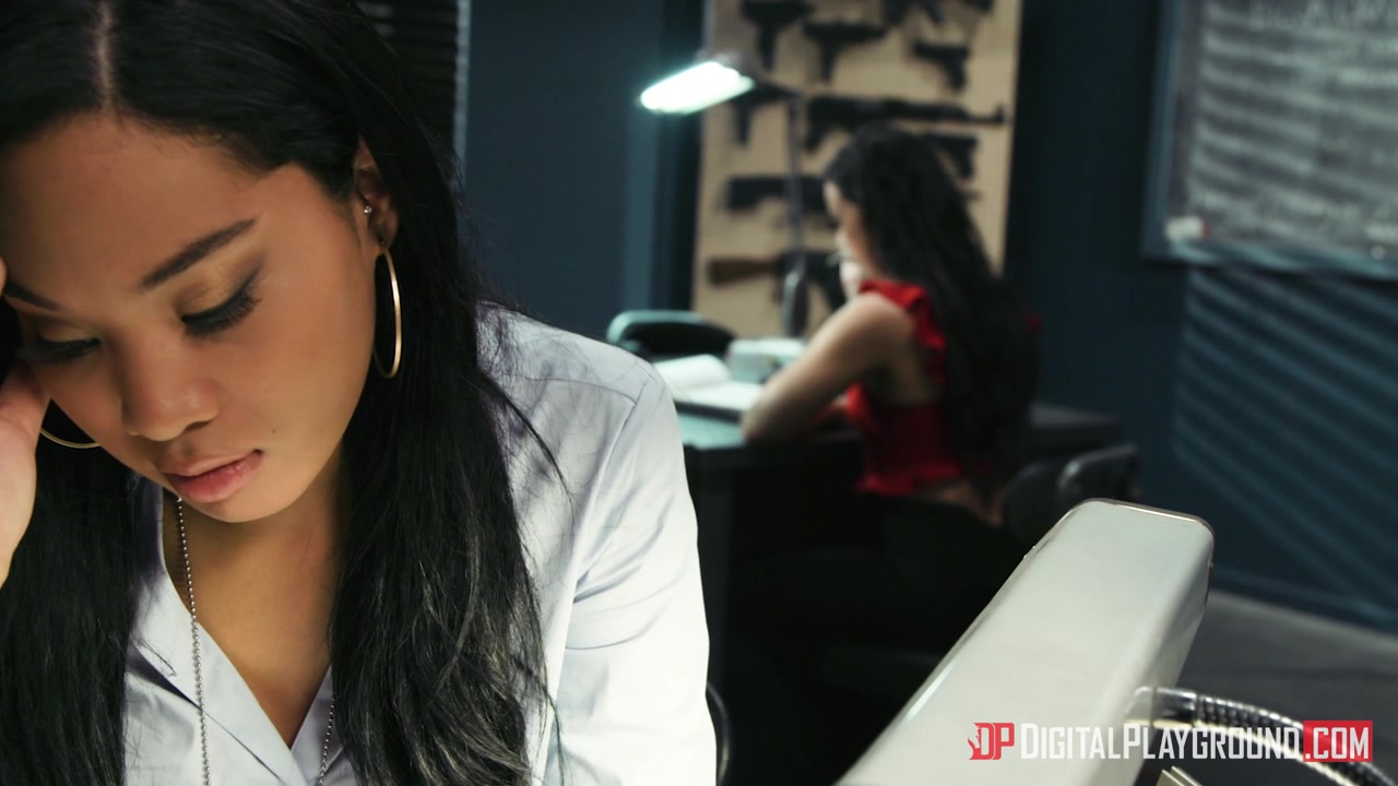 Лысый снял с мулатки кружевные трусики и отъебал на столе в пизду