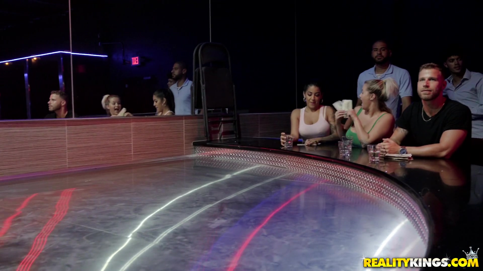 Грудастая стриптизёрша с тату вытащила парня на сцену и дала в анал