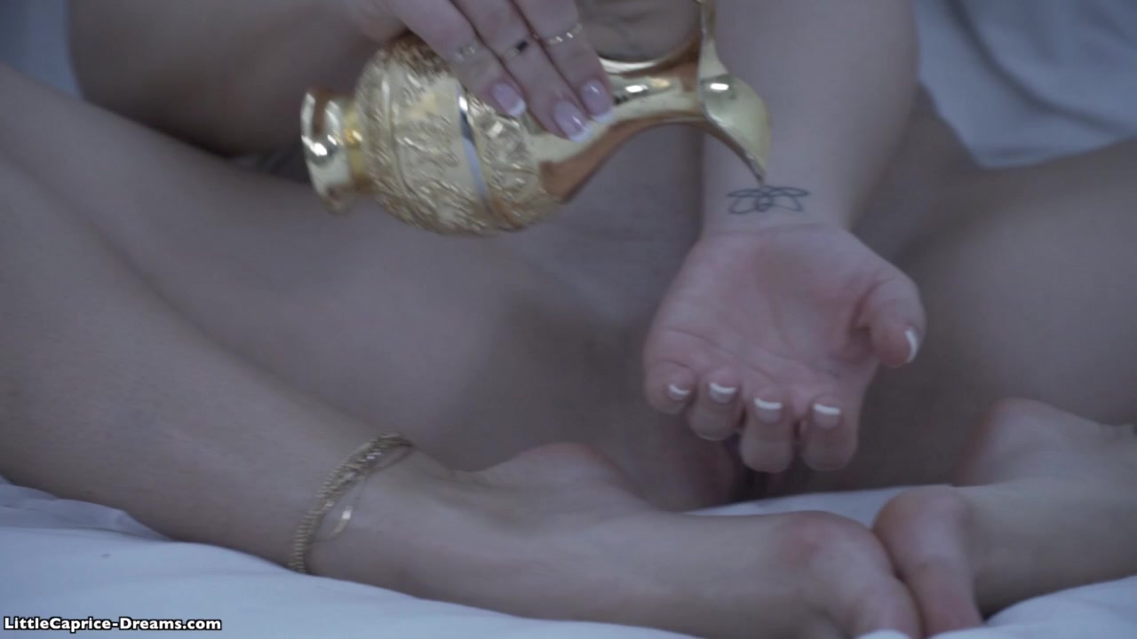 Горячая чешская девчонка Little Caprice натирает маслом сексуальное тело и ласкает себя руками. Возбуждённая шатенка трёт клитор руками и трогает грудь. Заметивший мастурбирующую девушку мужчина делает ей куннилингус и даёт отсосать свой бритый член. Он трахает девушку в побритую писю и заполняет её густой спермой.