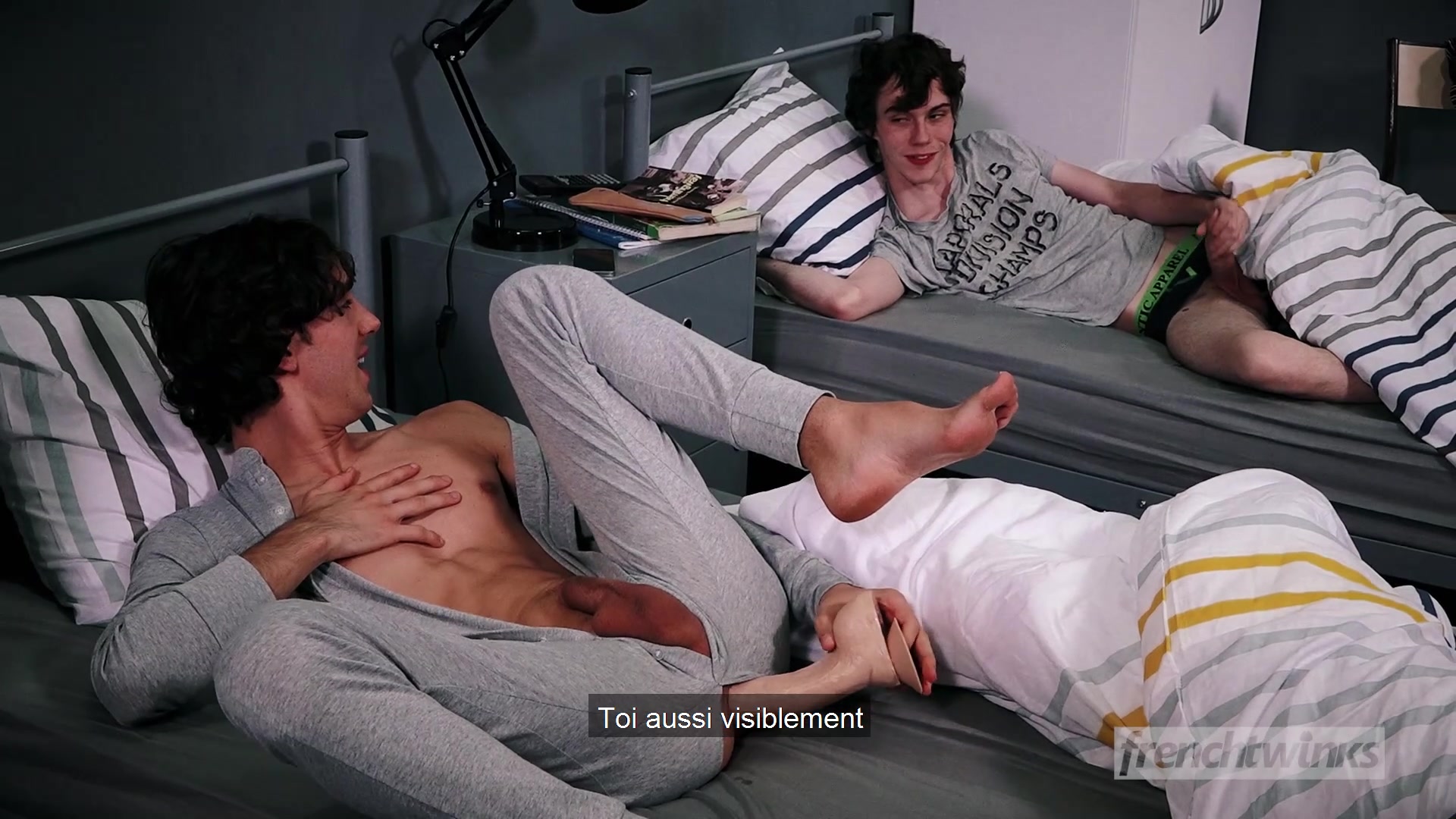 Два голубых парня соседа по комнате посреди ночи занялись гей сексом