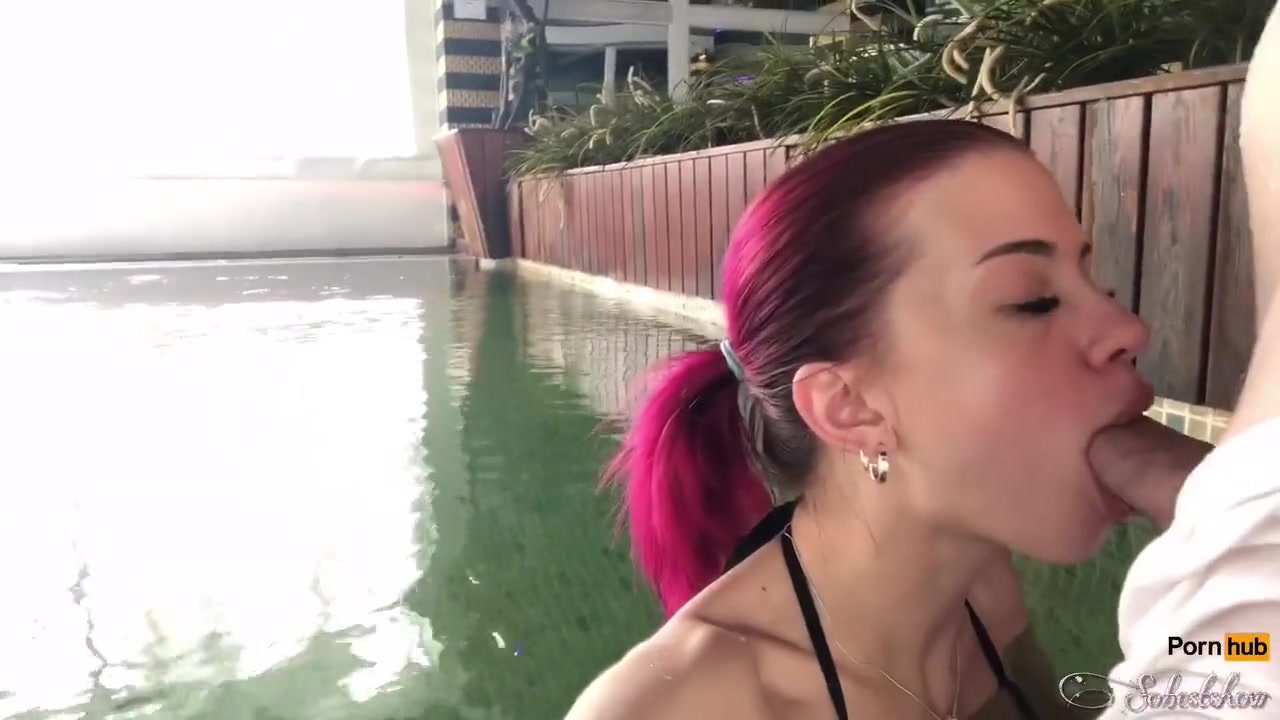 Молодая русская соска с розовыми волосами Freya Stein, пришла со своим бойфрендом в бассейн и решила сделать ему минет. Сидя в прозрачной воде, она стала медленно отсасывать и облизывать возбуждённый член парня. Старательная девчонка сделала своему приятелю глубокий минет и получила полный рот спермы.