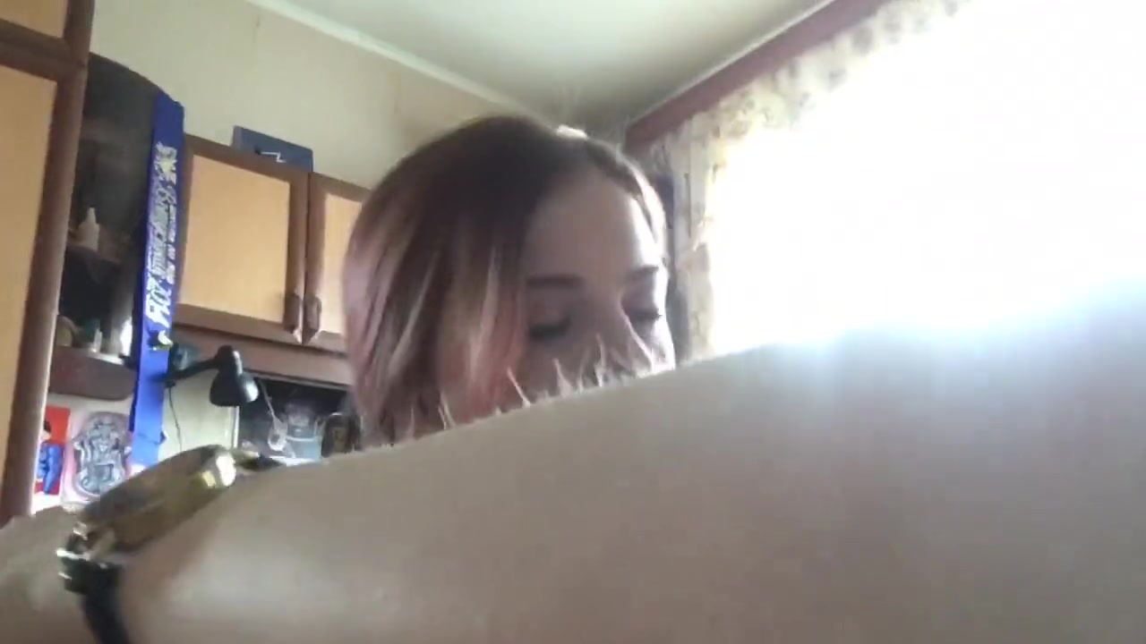 Соблазнительная русская тёлка с розовыми волосами жадно сосала член