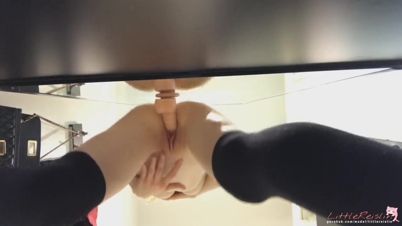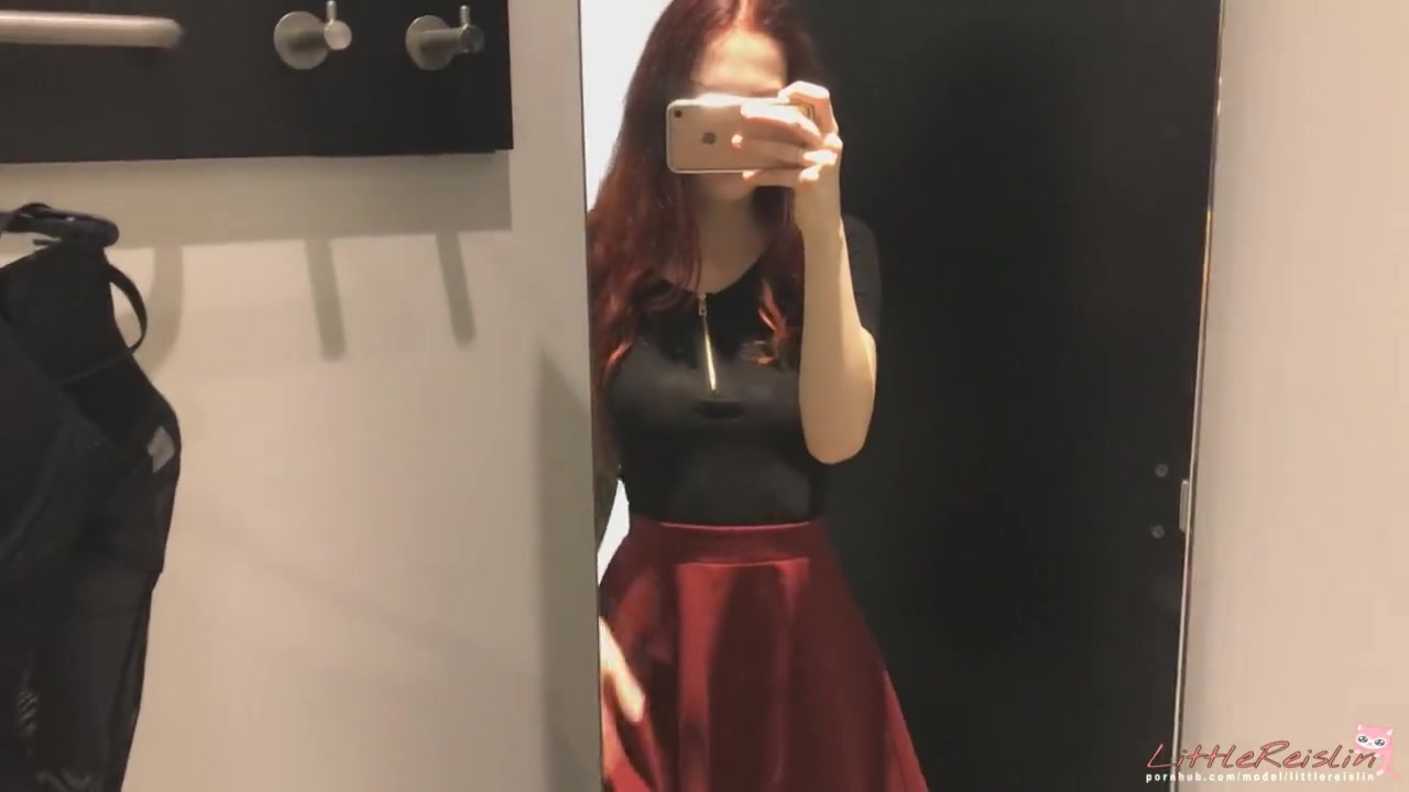 Рыжая татуированная русская девчонка Little Reislin в чёрных гольфах заходит в примерочную кабинку и прикрепляет к зеркалу фаллоимитатор. Эта бесстыжая худышка насаживается на него своей бритой пиздёнкой. Перевозбуждённая девица трахает себя здоровым фаллосом и снимает любительское порно на свой смартфон.