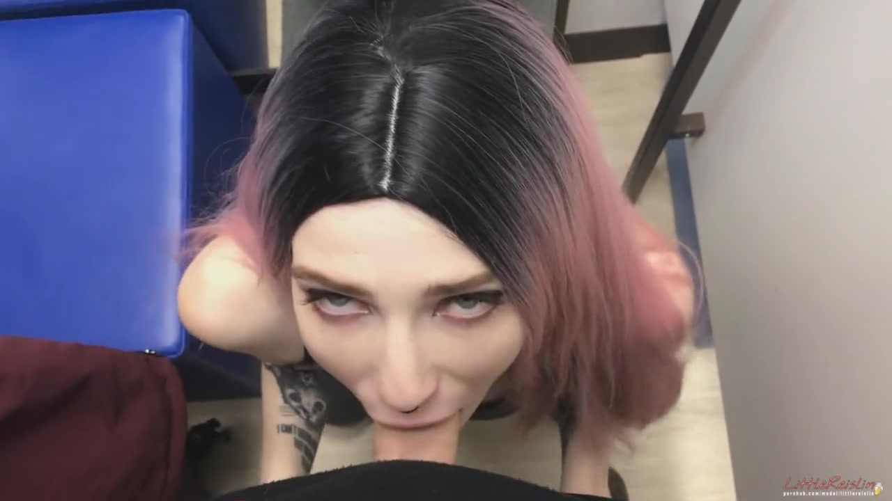 Молодой человек зашёл в примерочную кабинку магазина, где примеряла покупки голубоглазая русская девушка с розовыми волосами LittleReislin. Он дал красотке с татуировками на руках отсосать свой член в примерочной, а сам снимал любительское порно на телефон. Старательная девушка жадно отсасывала и дрочила член в общественном месте.