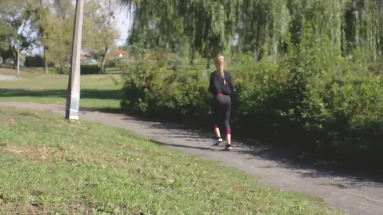 Сексуальная блондинка с косой во время спортивной пробежки оголила перед парнем сиськи и повела его домой. Дома девушка разделась и встала рачком подставив члену свою влажную пизду. Возбуждённый парень сразу засадил свой пенис в киску девушки. Он отодрал горячую блондиночку на кровати и заполнил спермой её вагину.