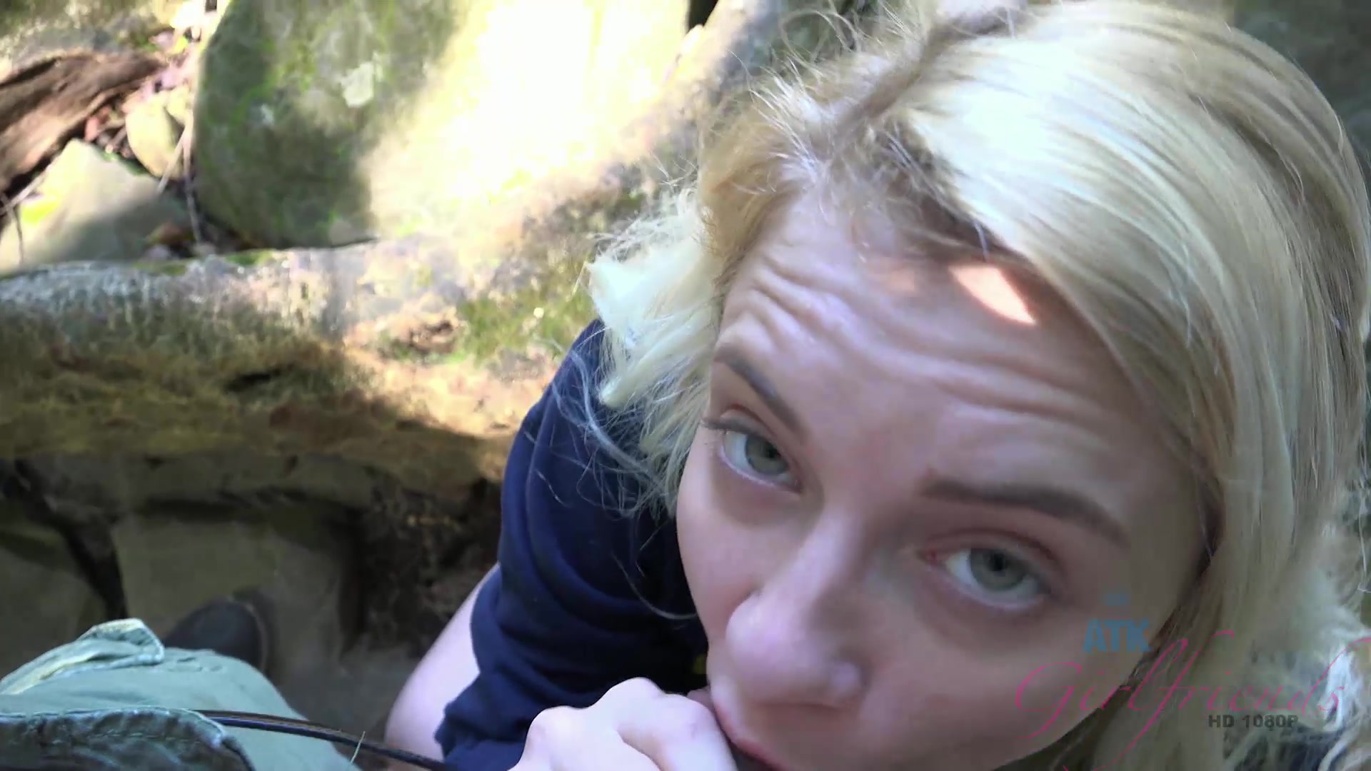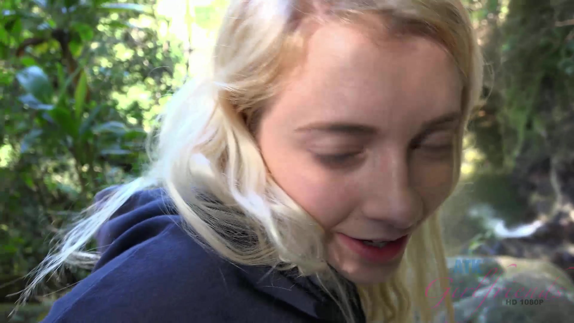 Молодая американская блондинка Riley Star со своим парнем приехала на автомобиле в джунгли. В самой чаще леса девушка спустила шорты и пописала. Возле бурного ручья девчонка сделала бойфренду минет и встала раком, подставив киску под член. Парень отодрал возбуждённую подругу и кончил в её открытый ротик.