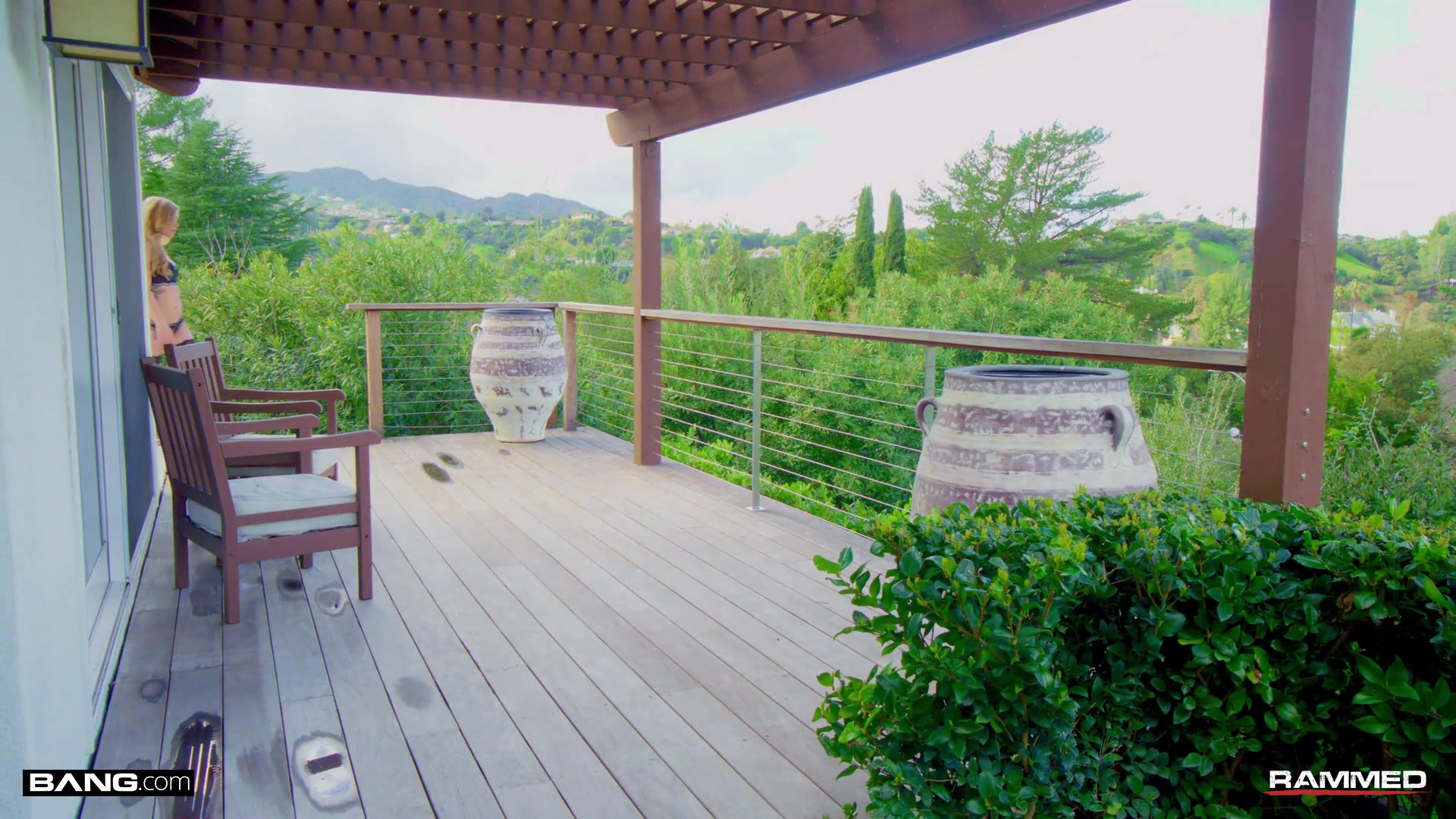 Красивая молодая блондинка Kali Roses гуляла по открытой террасе в сексуальном кружевном чёрном белье и чулках. Татуированная любительница пирсинга разделась догола и дразнила парня своим роскошным обнажённым телом. Перевозбуждённый бойфренд отлизал девке киску и засадил в неё свой член. Кудрявая блонда делала минет и ебалась с мужиком в разных позах, пока он не кончил ей на лицо.