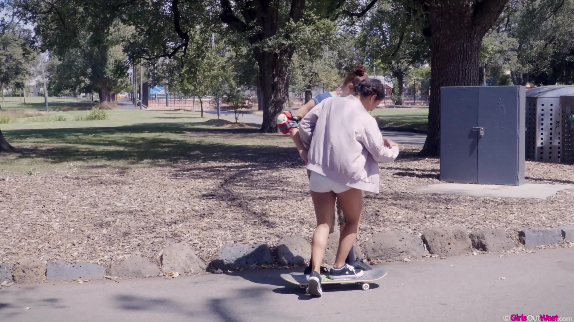 Влюблённая молодая лесбиянка Rubi Valentine сидела и наблюдала, как рыжая девушка Jessie G. катается на скейте. После покатушек подруги пошли в подворотню и стали страстно целоваться, прижавшись к стене. Девушки разделись донага и начали дрочить друг дружке клиторы и волосатые письки. Молодые любовницы сделали друг дружке куннилингус и фистинг.