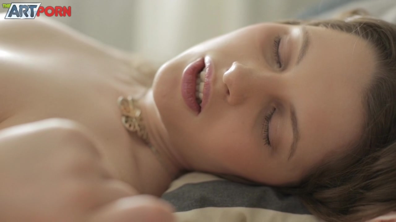 Кудрявая русская девчонка с русыми волосами ласкала своё сексуальное молодое тело на кровати. Девушка в чулках телесного цвета мастурбировала бритую письку и ласкала маленькие сиськи. Она сняла прозрачные трусики и стала теребить клитор руками, а потом сделала себе вагинальный фистинг.