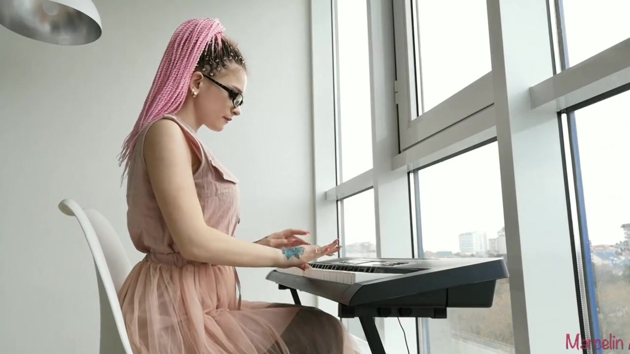 Очкастая русская девка с заплетёнными в косички розовыми волосами Marcelin Abadir, отсасывает и облизывает член у своего бойфренда. Старательная красотка с татуировкой на руке, с наслаждением делает минет счастливому приятелю. После великолепного отсоса, молодой человек поливает горячей спермой лицо и язык девушки.
