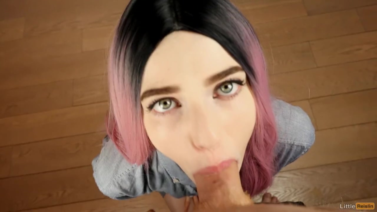 Парень ласкает грудь зеленоглазой русской девчонке с розовыми волосами и пирсингом сосков LittleReislin. Быстро возбудившаяся девка снимает с него трико и начинает делать минет, стоя на коленях. Старательная красотка с удовольствием сосёт возбуждённый пенис и дрочит его руками, доводя парня до семяизвержения на лицо.