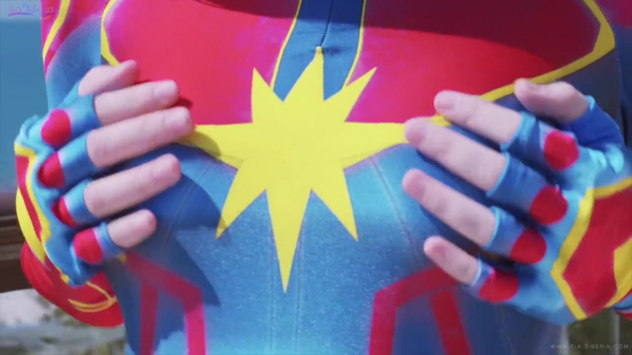 Светловолосая русская косплеерша Siasiberia, расхаживает по террасе шикарного особняка в костюме Капитана Марвела. Затем сексуальная красотка идёт в дом и начинает отсасывать член у своего парня. После минета, возбуждённый парень трахает эту гламурную девчонку в бритую писю и заполняет спермой её нежный ротик.