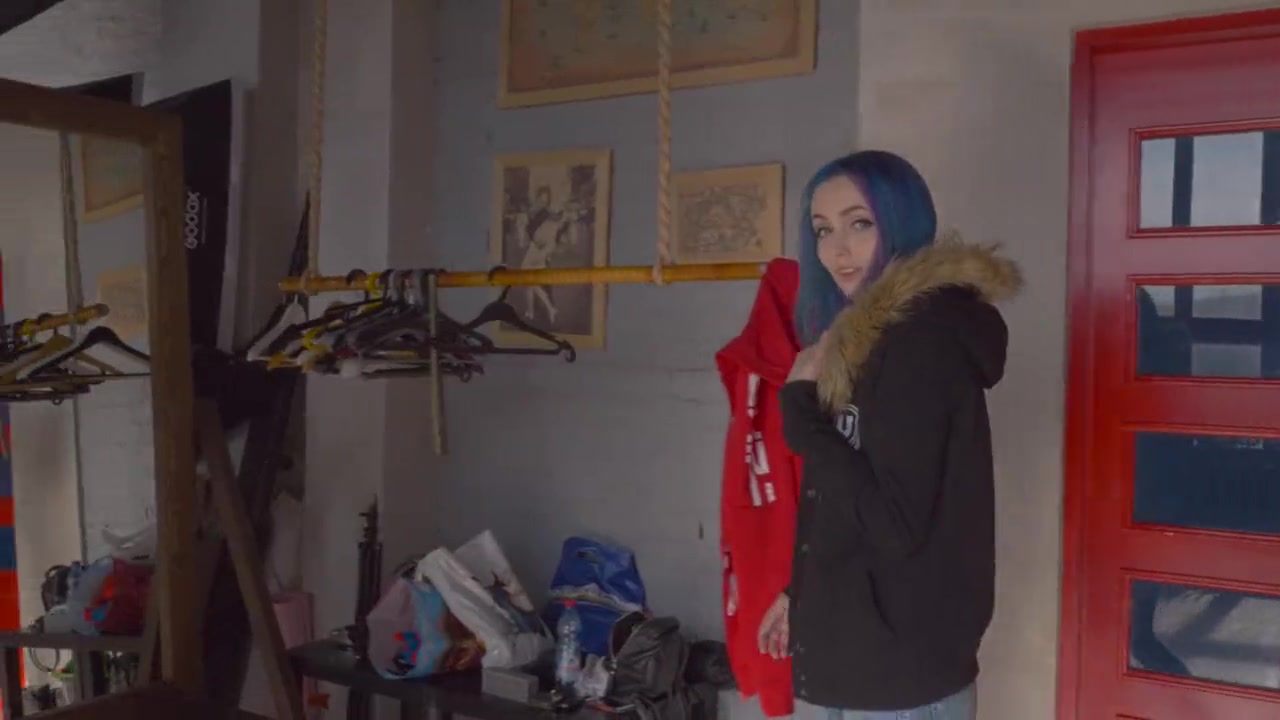Тощая русская деваха с голубыми волосами Siasiberia, раздевается догола и ложится на большую кровать. На кровати она теребит свою бритую письку тонкими пальцами и вставляет их во влагалище. Затем возбуждённая девушка берёт в руки чёрный вибратор и трахает себя в вагину до наступления оргазма.