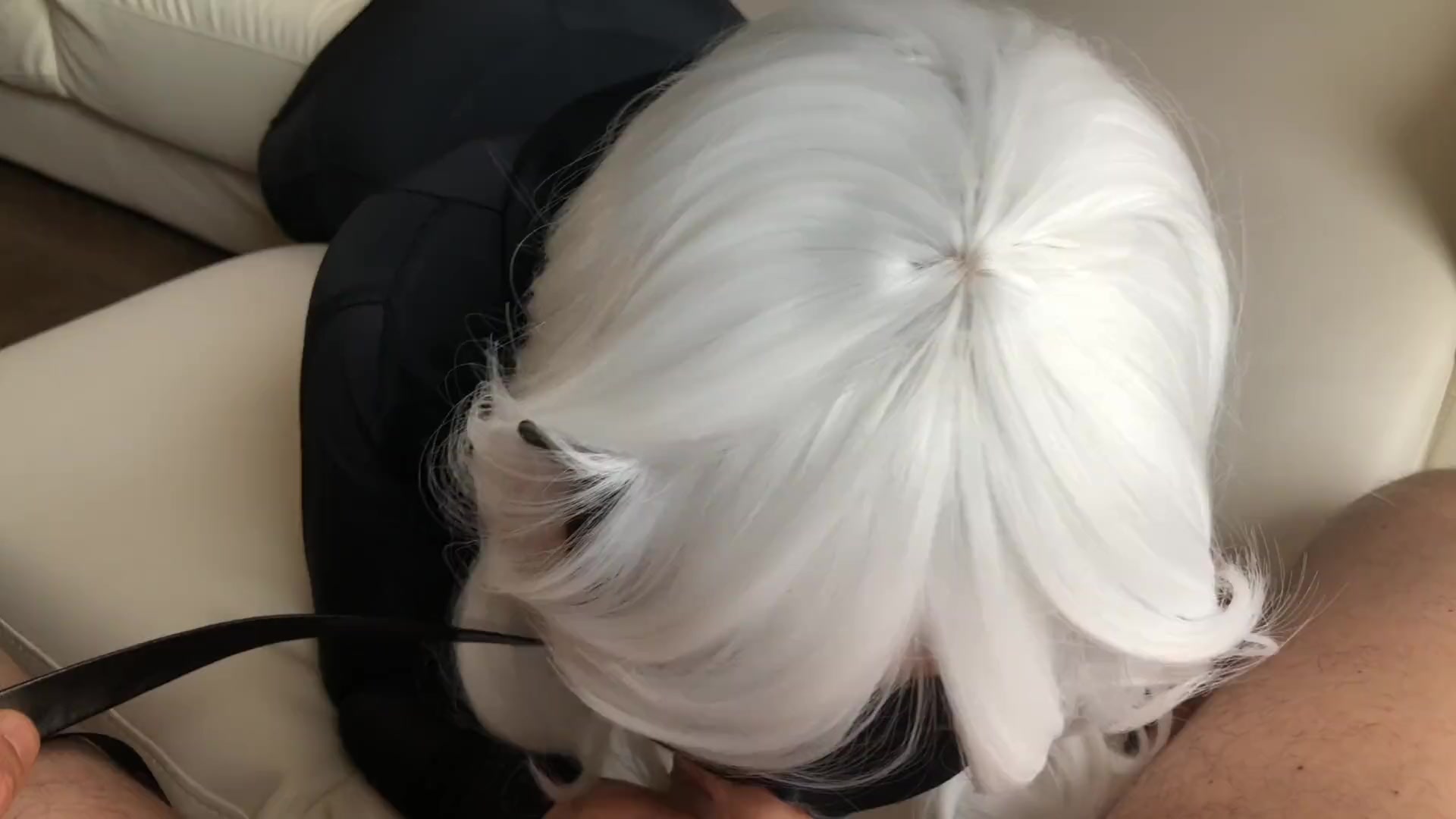 Парень ведёт на поводке светловолосую русскую любительницу косплея в чёрной маске на лице Lolly Lips. Он даёт блондиночке в чёрном костюме кошки отсосать свой возбуждённый пенис, а сам в это время снимает домашнее порно от первого лица. Ласковая кошечка делает парню минет и высасывает всю сперму из члена.