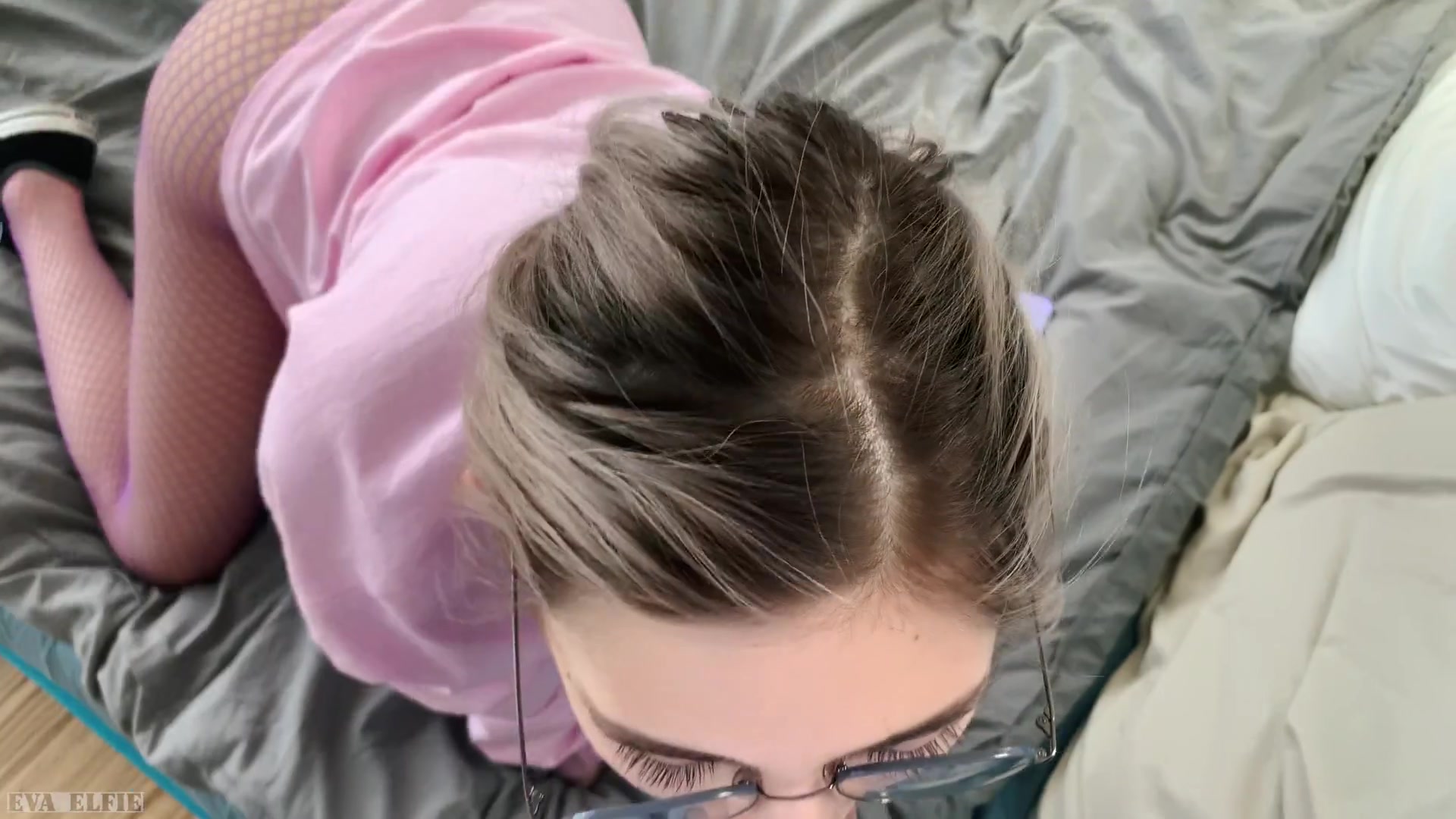 Игривая русская красотка с большой грудью Eva Elfie расстегнула парню ширинку и стала дрочить его член. Эта светловолосая очкастая девка лизала головку члена и дрочила его руками, а затем встала рачком. Возбуждённый кавалер снял с девушки сетчатые колготки и засадил член в её бритую пизду. Парень отодрал девку на кровати и забрызгал спермой её бритый лобок.