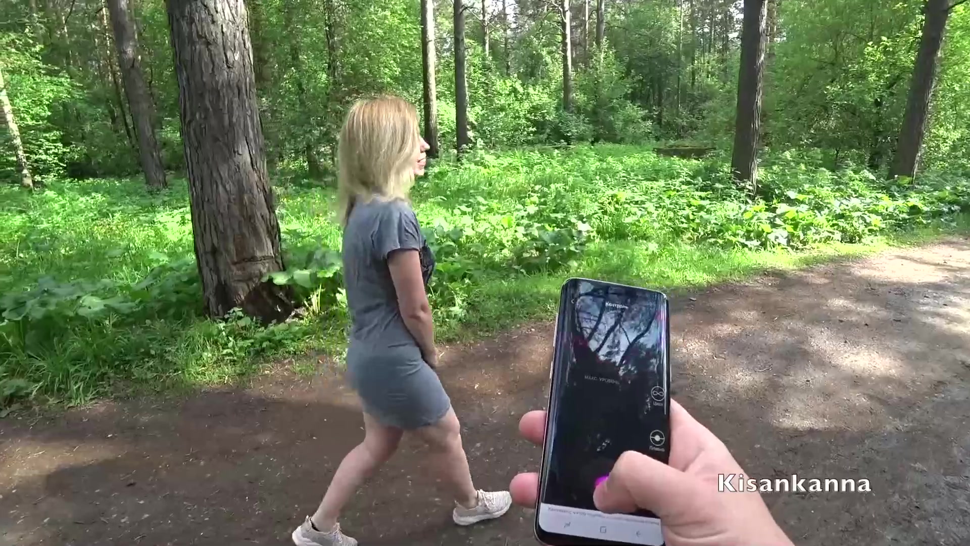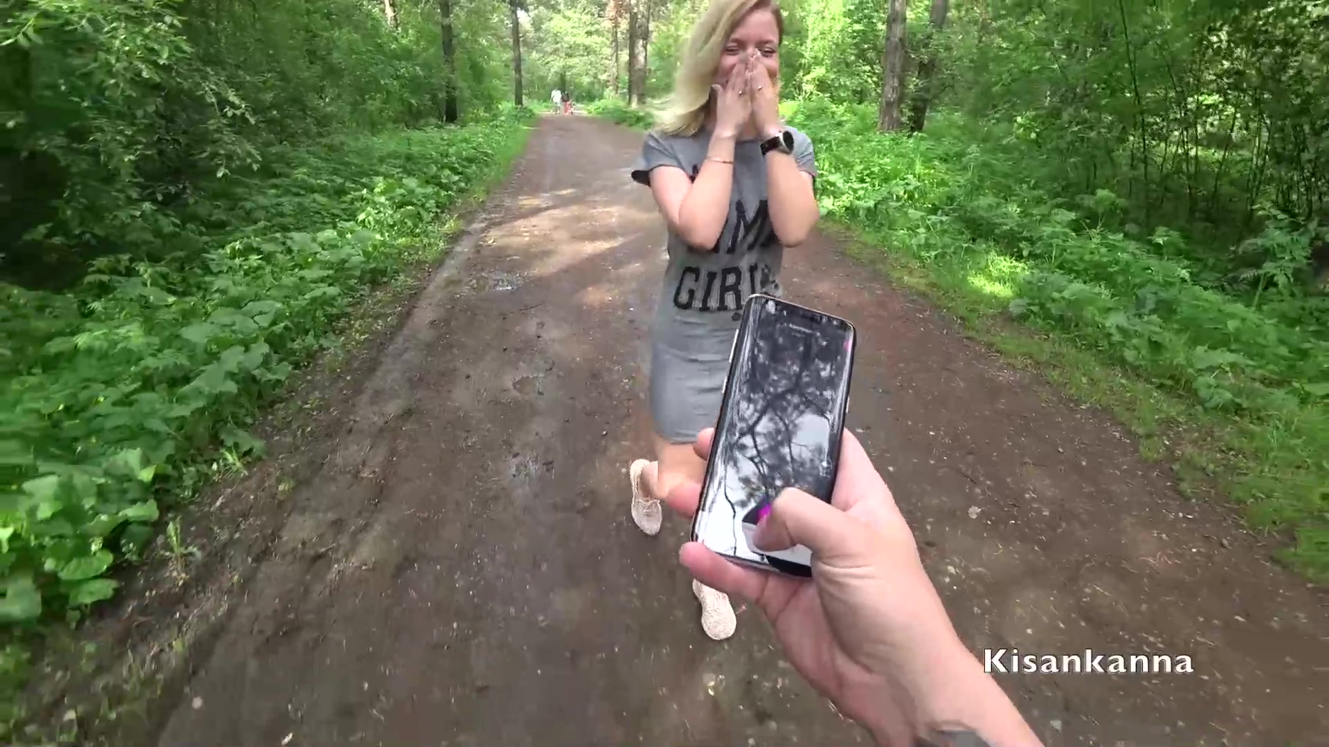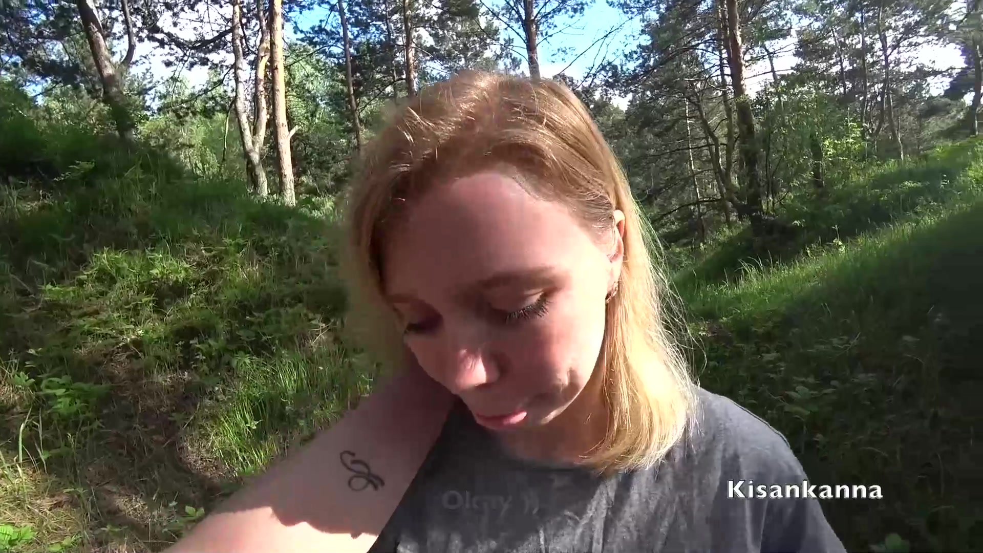 Весёлая русская блондинка с большими натуральными титьками Kisankanna, вставила в киску вибратор и надела чёрное нижнее бельё. Она пошла вместе с кавалером в ближайший лес и там сняла с себя трусики. Возбуждённая девчонка мастурбировала киску сидя на траве и сквиртовала во время сильного оргазма. Затем она сделала бойфренду минет и была оттрахана в позе раком посреди леса. Секс на природе завершился семяизвержением в рот девушки.