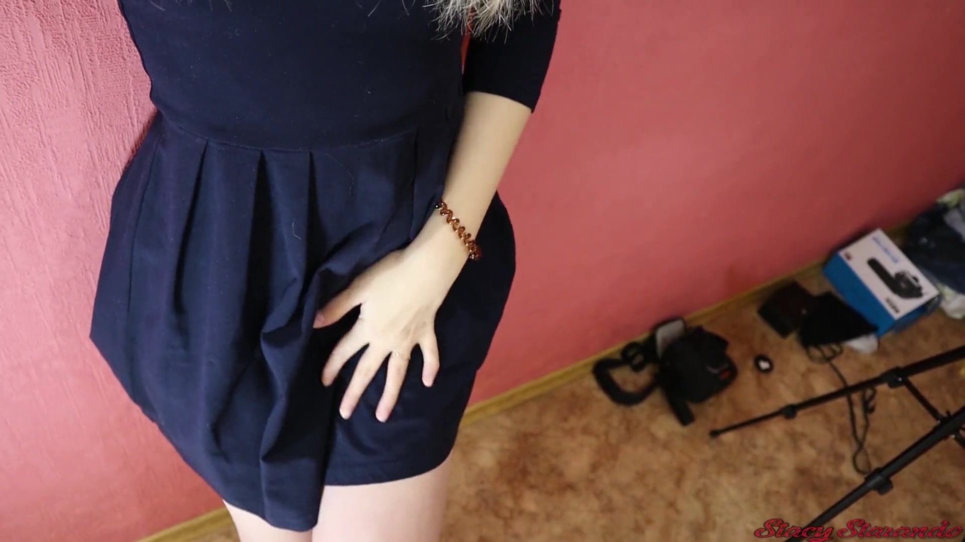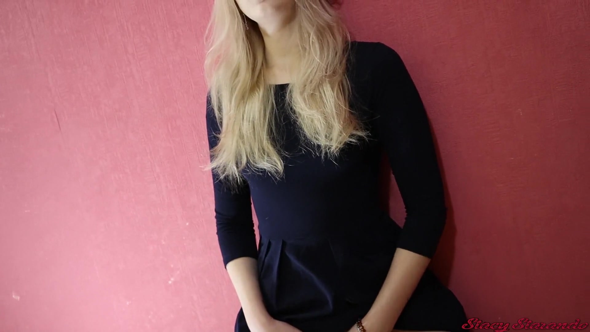Зеленоглазая русская блондинка Stacy Starando берёт в руку видеокамеру и задирает платье. Девушка снимает свои синие трусики и начинает теребить клитор рукой. Прислонившись к стене, перевозбуждённая девчонка ласкает свою розовую киску и снимает крупным планом домашнее порно мастурбации.