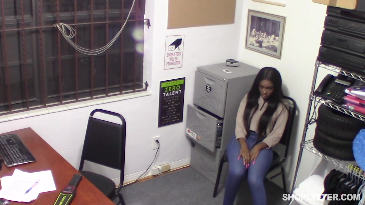Бородатый охранник супермаркета привёл в подсобку задержанную за кражу молодую негритянку Tori Montana. Он заставил мулатку раздеться догола и стал шлёпать её по голой жопе. Мужчина заставил испуганную смуглянку отсасывать член. Насладившись глубоким отсосом, охранник отодрал девку в разных позах и забрызгал её лицо спермой.