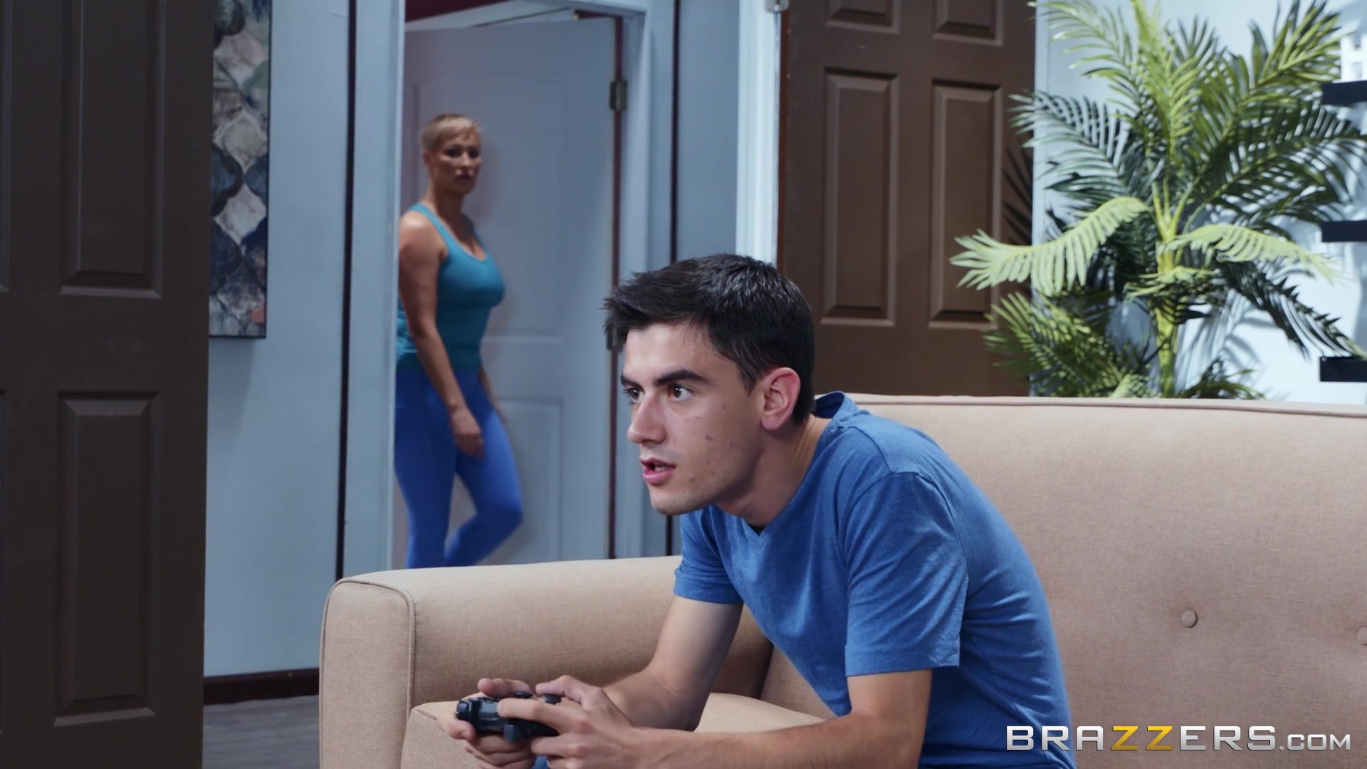 Озорная молодая мулатка Jeni Angel, отсасывает член своему тощему бойфренду за спиной у сиськастой светловолосой мачехи Ryan Keely. Внезапно мачеха поворачивается и замечает их. Она хватает парня и делает ему минет, на глазах у падчерицы. Похотливая мачеха трахает худого парня вместе со своей развратной падчерицей, после чего парень поливает их лица спермой.