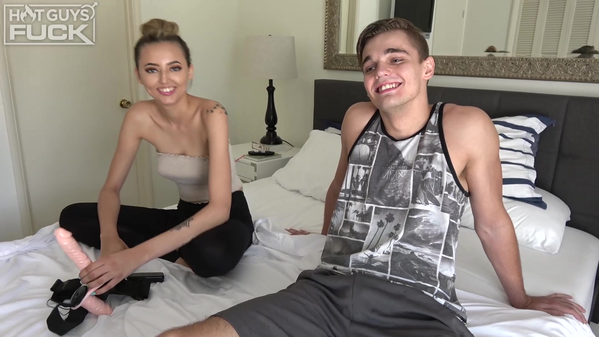 Паренёк подарил страпон своей молодой подружке с тёмно-русыми волосами Nicole Kidd и решил сразу заняться с ней фетиш сексом. Худая девушка сделала ему минет на кровати и дала отлизать клитор. Перевозбуждённый парень отодрал девку в бритую пизду в разных позах, а затем встал раком и подставил под страпон свой анус. Татуированная девка трахала парня страпоном в очко до тех пор, пока он не кончил.