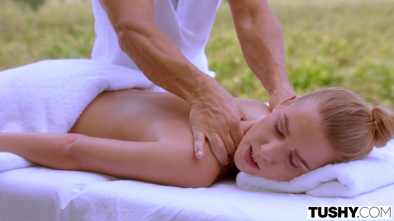 После теннисной тренировки, светловолосая чешская девушка Alexis Crystal раздевается и ложится загорать на лежак. Она купается в бассейне в обнажённом виде и ждёт, когда придёт массажист. Лысый мужчина делает девке эротический массаж с маслом и фистинг, а потом даёт ей отсосать свой член. Сразу после минета он ебёт блондинку на свежем воздухе в киску и анус, после чего кончает на её язык.