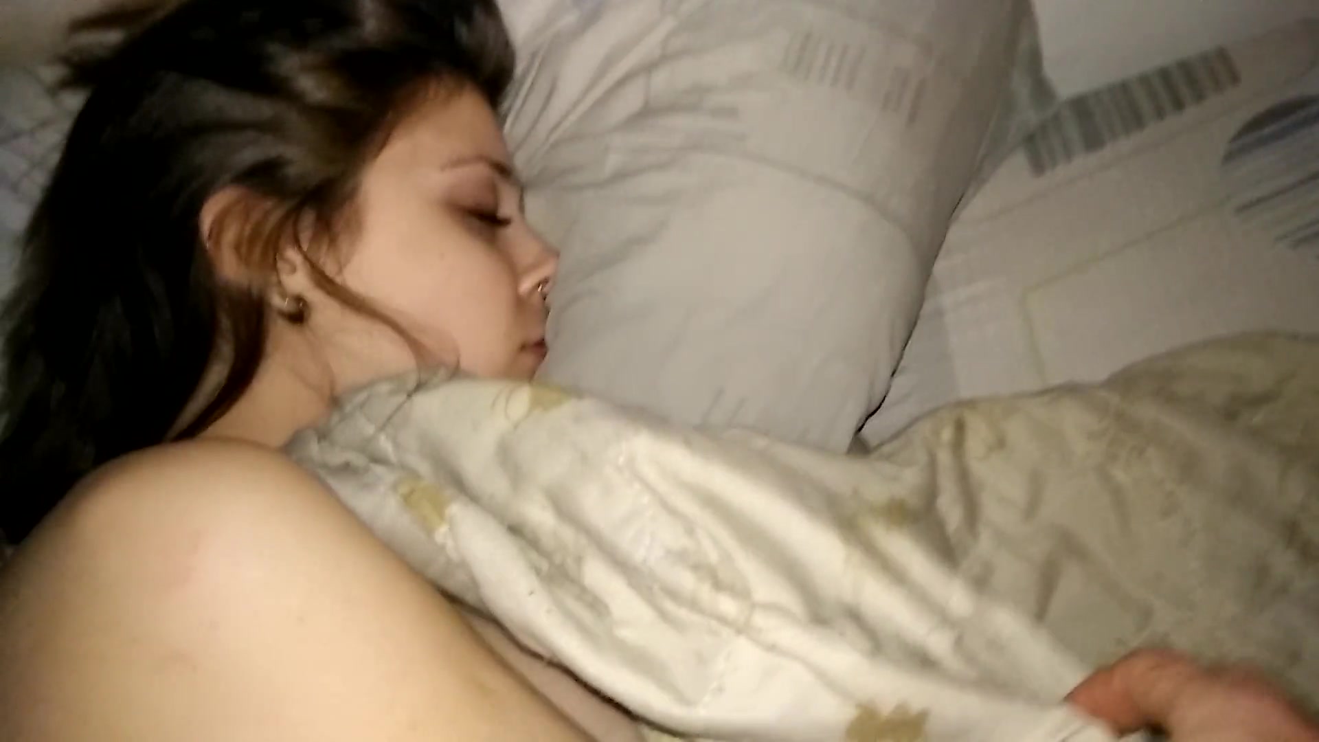 Возбуждённый парень подошёл к спящей на кровати молодой русской шатенке Нике и задрал одеяло. Он стал дрочить на сексуальную обнажённую подругу, а затем стянул с неё кружевные трусики. Пока девушка мирно спала, паренёк в полной тишине оттрахал её в побритую пизду и забрызгал спермой аппетитную попу.