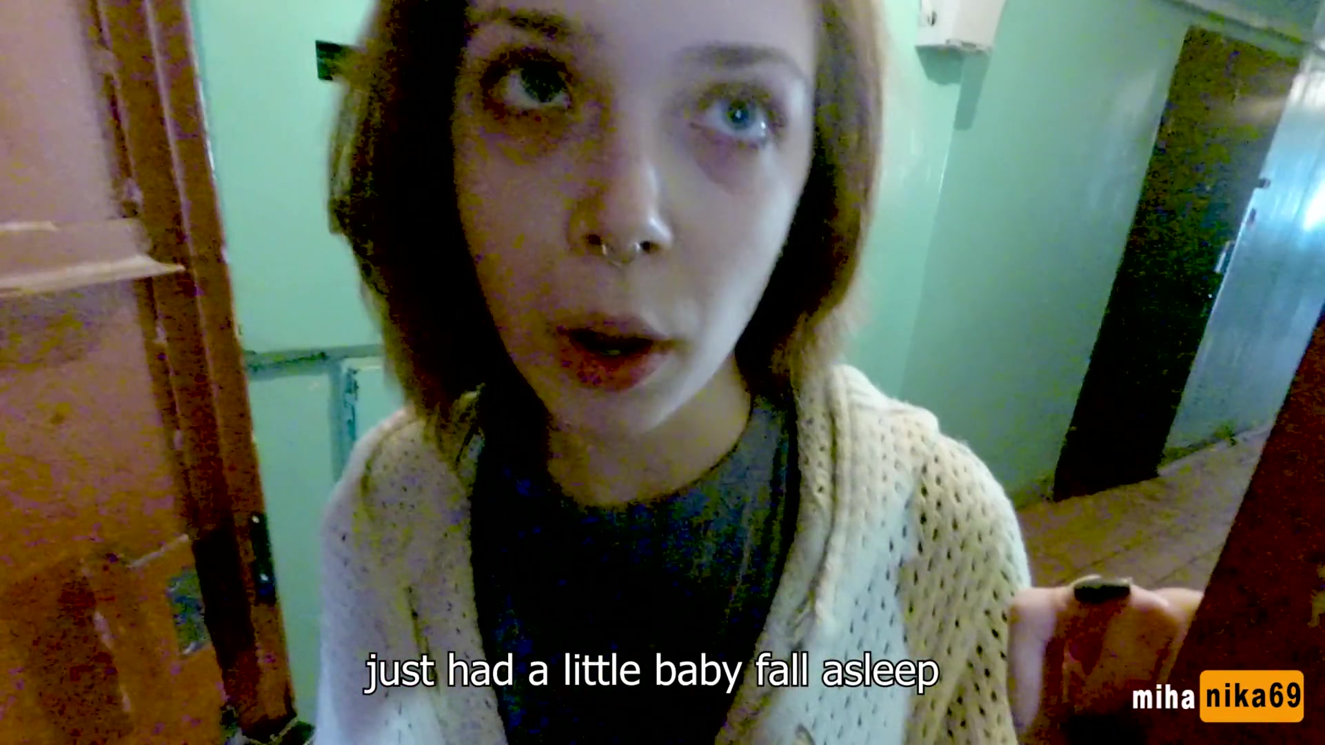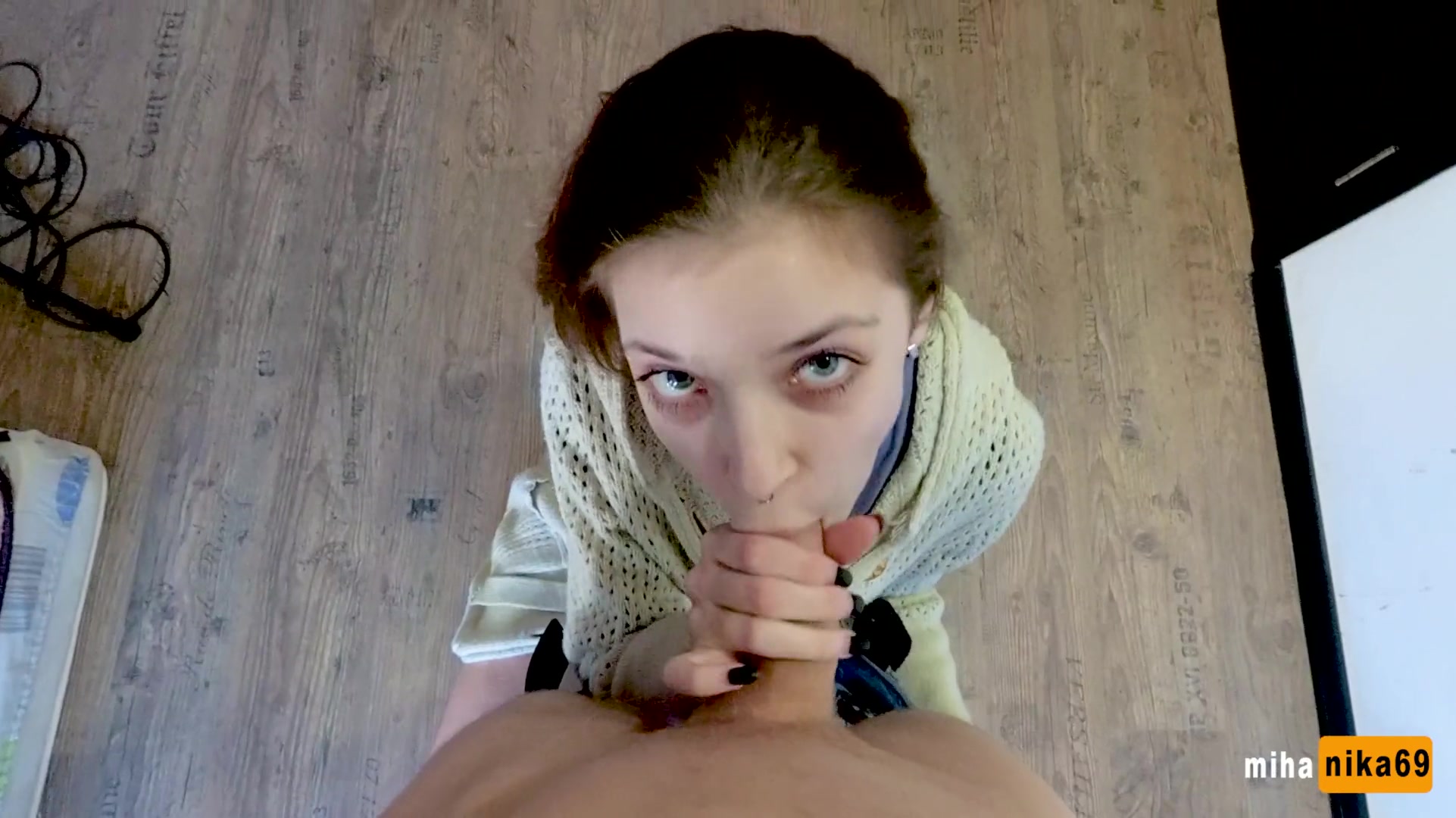 Светловолосая русская девка с пирсингом носа MihaNika69, напросилась в гости к молодому соседу и сразу принялась отсасывать у него член. Отсосав член, голубоглазая шалава разделась догола и дала оттрахать себя в побритую пиздёнку. Разгорячённый парень оттрахал эту похотливую сисястую тёлочку в разных позах и забрызгал спермой её пизду.