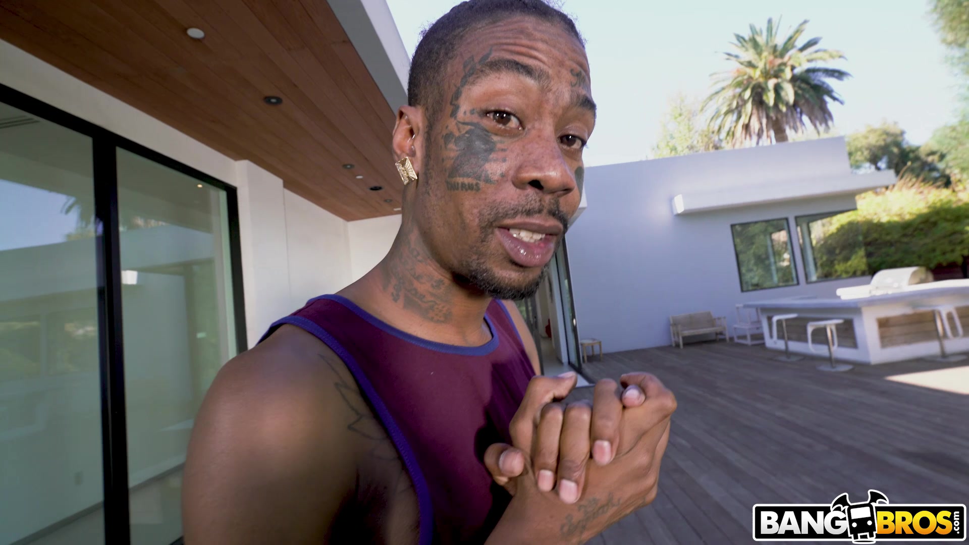 Сиськастая молодая мулатка с татуировкой на животе Aaliyah Hadid, раздевается перед негром и отсасывает у него член. После глубокого минета, чёрный мужик трахает горячую смуглянку в пизду на диване. Затем своим большим членом он ебёт темноволосую девушку в разработанный анус и поливает спермой её лицо.