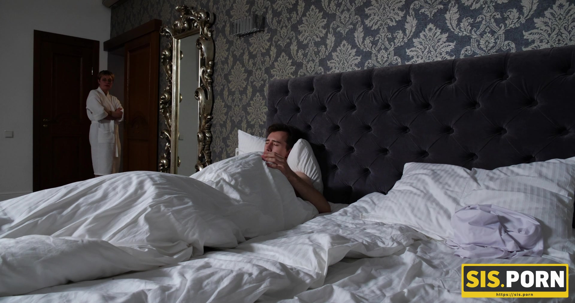 Бесстыжая русская блондинка Nikki Hill, дрочит член и делает парню минет на кухне в присутствии его мамочки. Затем она идёт с парнем в его комнату и после отсоса снимает с себя трусики. Девка садится на твёрдый член и трахается с бойфрендом на кровати в разных позах. Оттрахав худую тёлку в бритую киску, парень кончает на её сиськи.