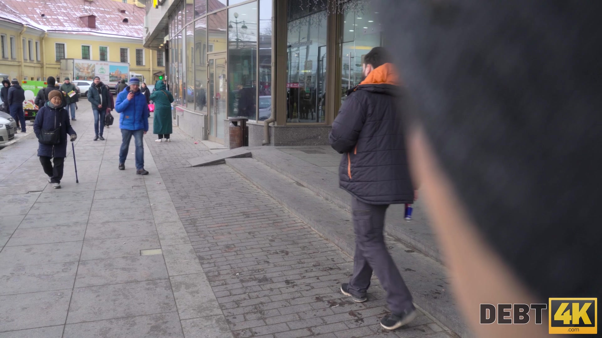 Мужчина коллектор выследил молодую русскую шатенку Candy Kay, задолжавшую большую сумму денег. Муж должницы согласился на то, чтобы супруга заплатила свой долг натурой. Он снял с девушки полотенце и продемонстрировал коллектору её сексуальное обнажённое тело. Быстро возбудившийся коллектор дал девке отсосать член и отымел её в бритую пизду и рабочий анус. После анала, лысый коллектор обкончал спермой живот девушки.