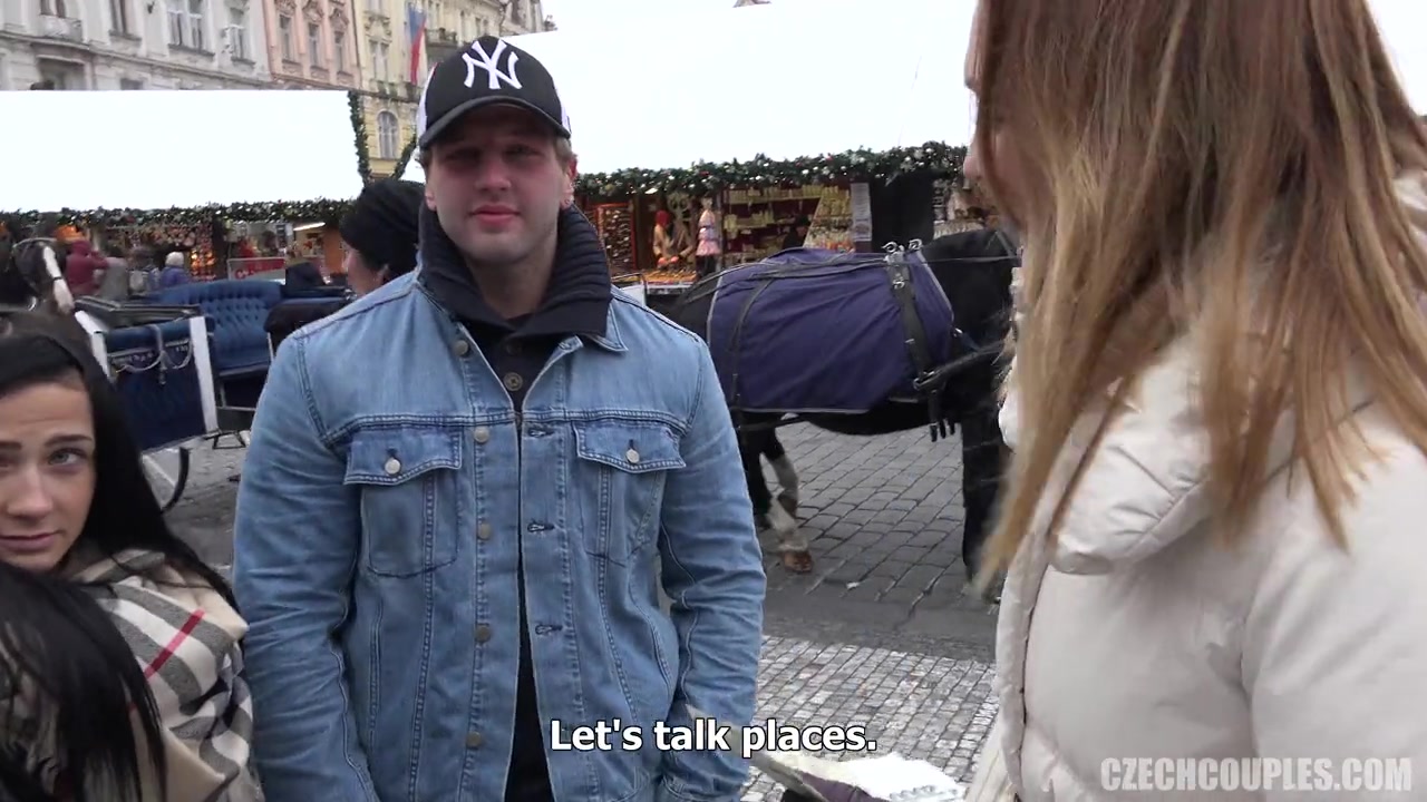 Две молодые чешские пары встретились на улице, студёным зимним днём и договорились заняться свинг сексом. Свингеры направились на съёмную квартиру, где блондинка и брюнетка сразу стали целоваться. Сиськастые девушки поласкали друг дружку и стали отсасывать член у одного из парней, а второй парень принялся наблюдать за групповухой сидя в кресле. После минета, парень отодрал двух свингерш в киску и анус, а в конце забрызгал их лица спермой.