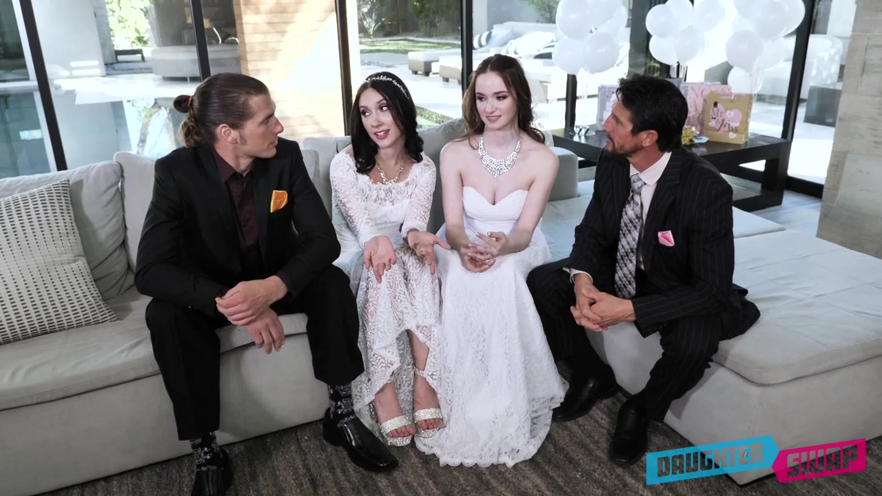 Перед церемонией бракосочетания, две молодые невесты - Jazmin Luv и Hazel Moore, предложили своим женихам заняться групповым сексом. Обе девушки сделали мужчинам сочный минет и насладились куннилингусом, после чего дали оттрахать себя в чисто побритые писки. Ненасытные молодые невесты были оттраханы в разных позах и получили сперму во влажные киски.